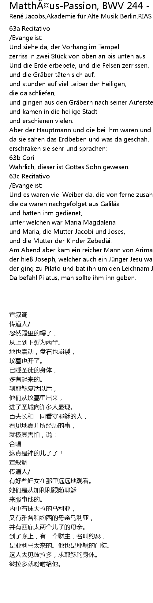 | Song | Matthäus-Passion, BWV 244 - Nr. 63 |
