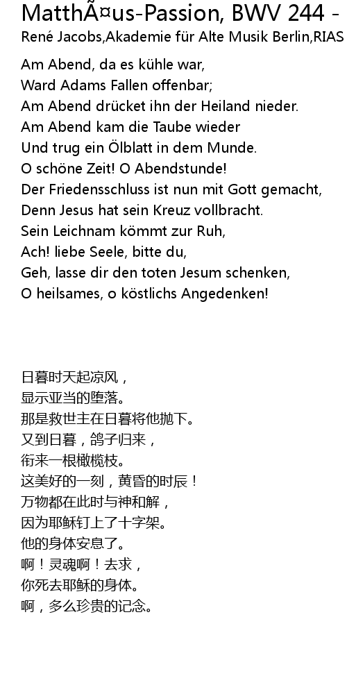 | Song | Matthäus-Passion, BWV 244 - Nr. 64 |