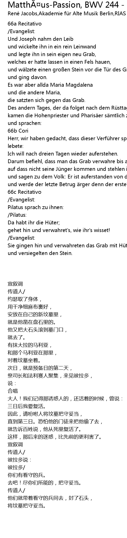 | Song | Matthäus-Passion, BWV 244 - Nr. 66 |