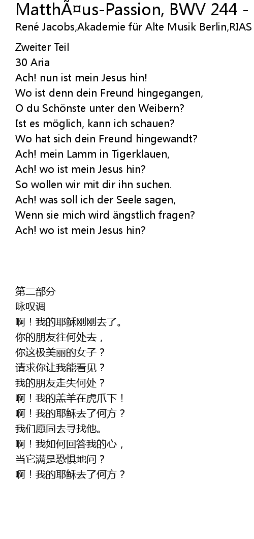| [00:19.000] | Ach! nun ist mein Jesus hin! |