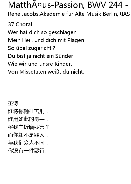 | Song | Matthäus-Passion, BWV 244 - Nr. 37 |