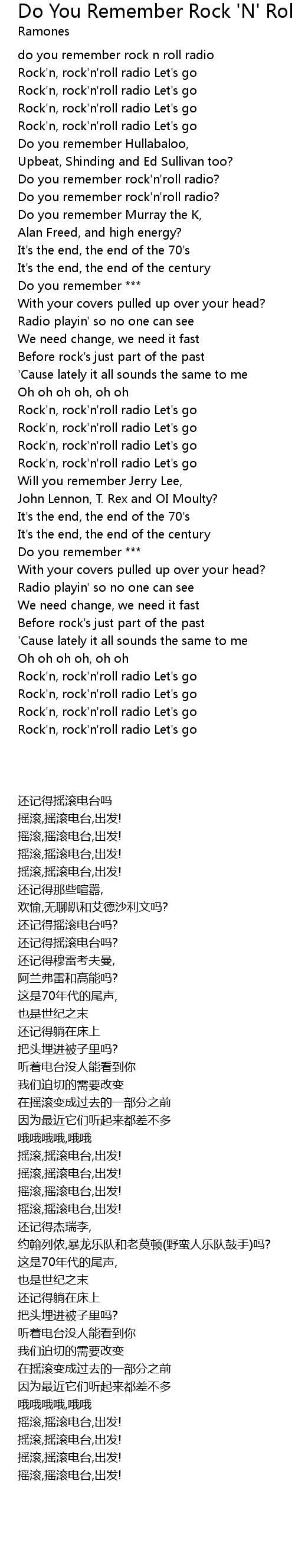 Do You Remember Rock 'N' Roll Radio? Lyrics