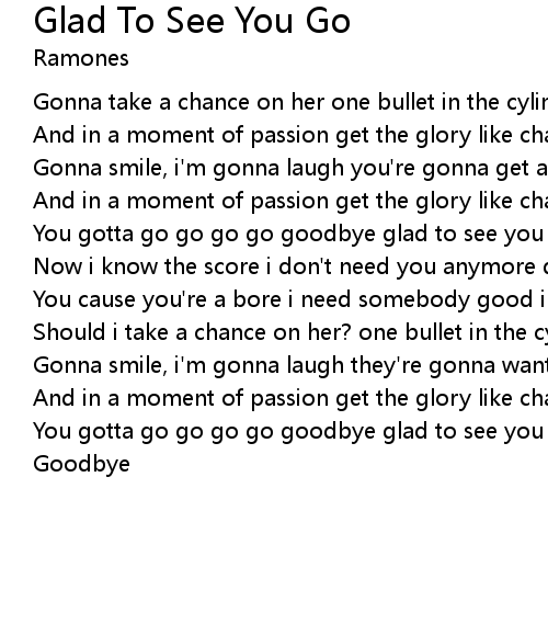 You gotta go go go go goodbye glad to see you go go go go goodbye |