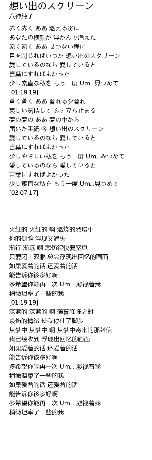 | [01:51.46] | 届いた手紙 今 想い出のスクリーン |