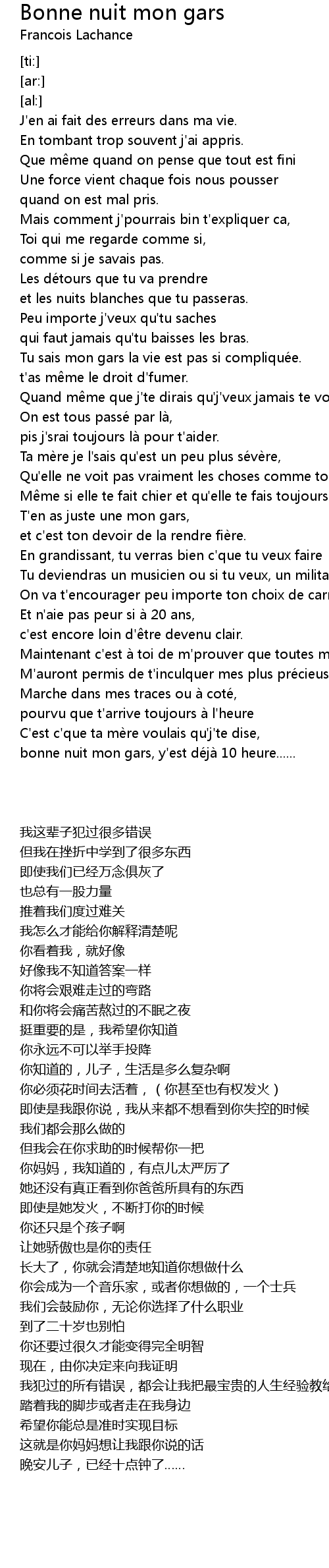 | [03:55.32] | bonne nuit mon gars, y' est dé jà 10 heure...... |