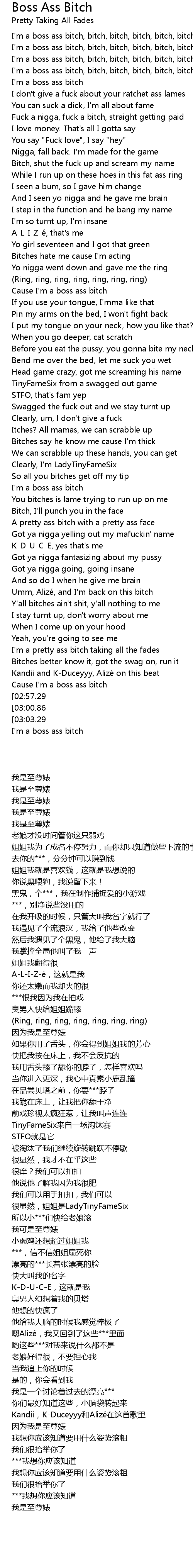 | [00:21.50] | I' m a boss ass bitch, bitch, bitch, bitch, bitch, bitch, bitch |
