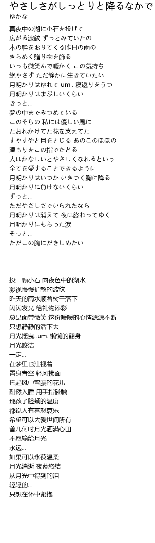 | [03:24.22] | 月明かりはいつか いきつく胸に降る |