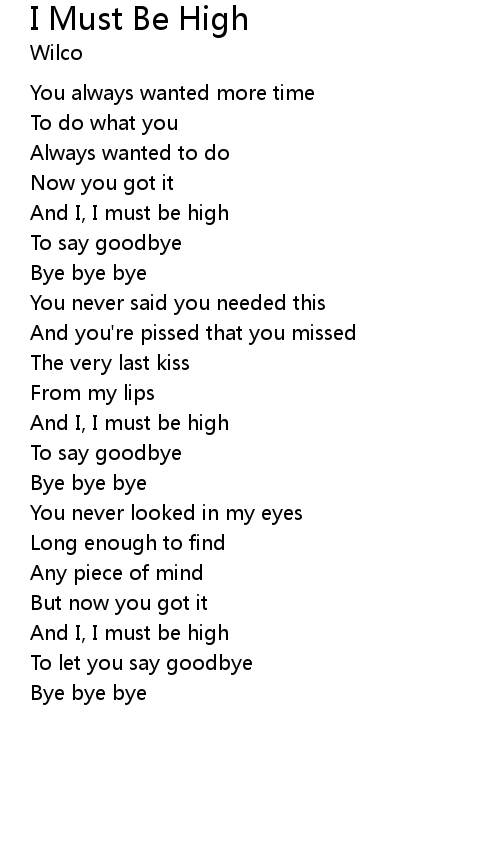 | And I, I must be high | |