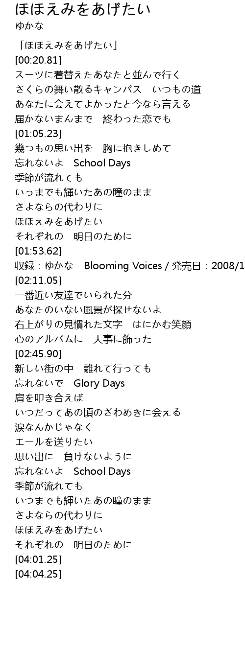 | [00:00.00] | 「ほほえみをあげたい」 |