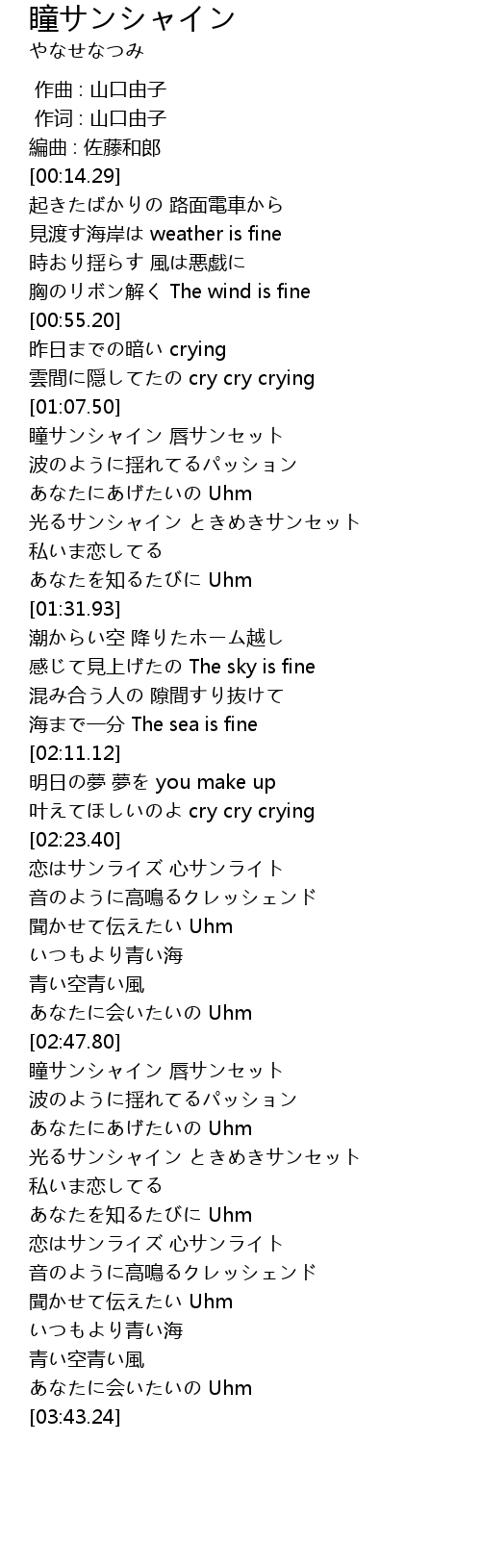 | [03:00.31] | 瞳サンシャイン 唇サンセット |