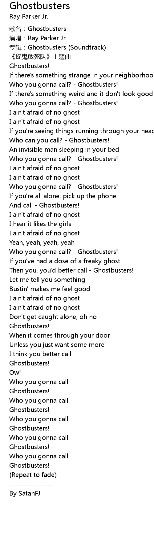 | [00:42.82] | Who you gonna call? - Ghostbusters! |