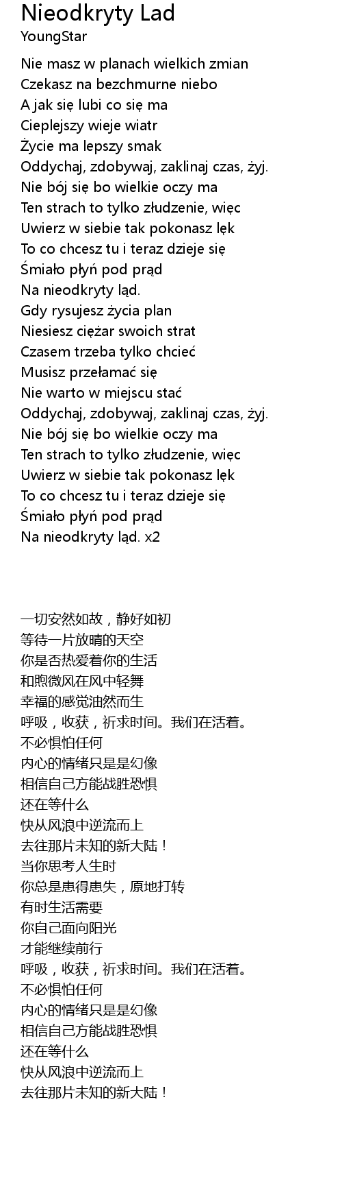 | [02:24.00] | Na nieodkryty ląd. x2 |