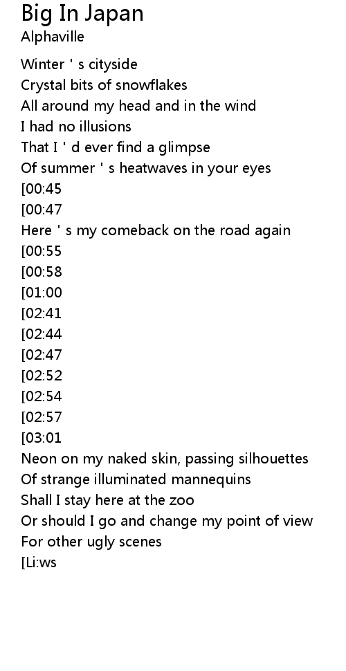 | [03:21][02:52][02:32][01:13] | Big in Japan-alright, |