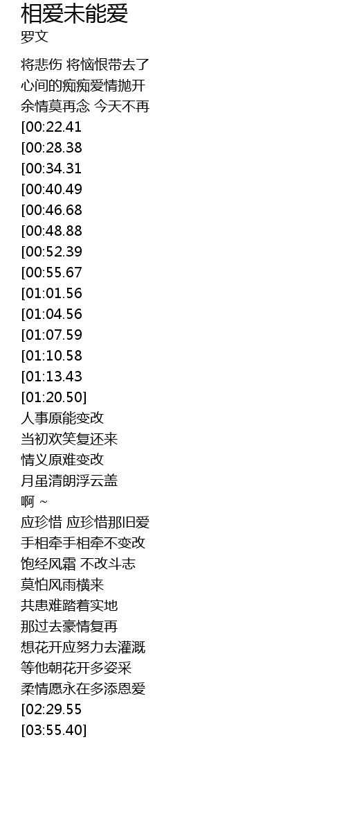 | [03:00.05][00:40.49] | 应该相爱未能爱 |