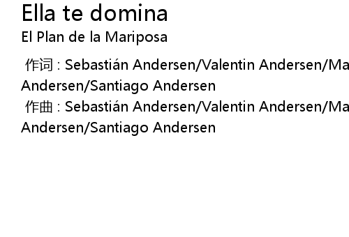 | [00:00.000] | 作曲 : Sebastián Andersen/Valentin Andersen/Maximo Andersen/Santiago Andersen |