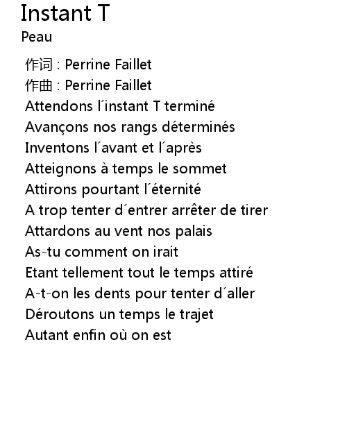 | [00:01.000] | zuò qǔ : Perrine Faillet |
