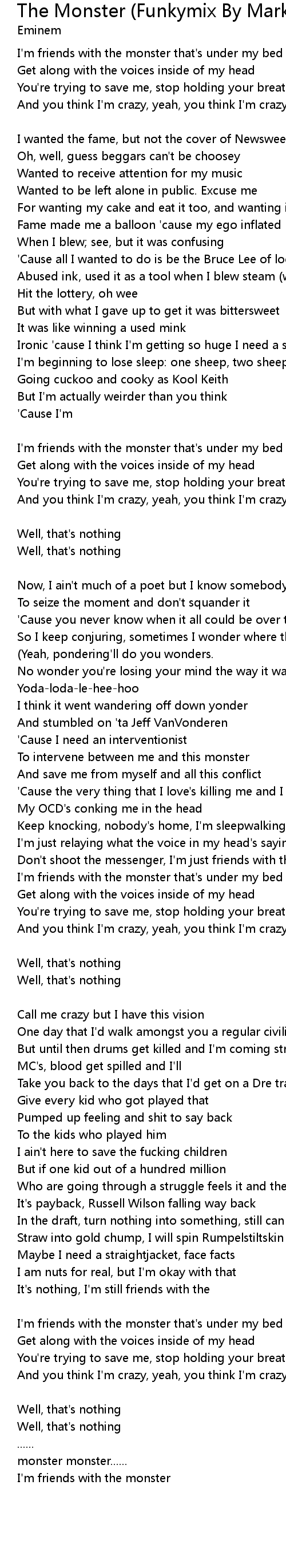Ironic 'cause I think I'm getting so huge I need a shrink |