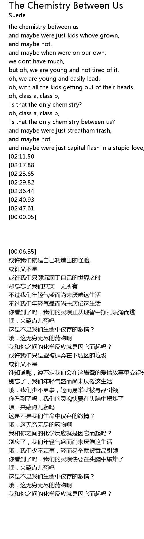 [03:50.01][02:47.61] is that the only chemistry between us?