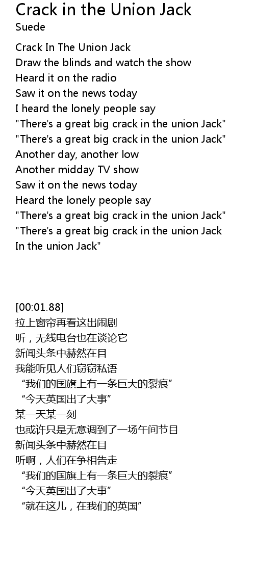 "There's a great big crack in the union Jack |