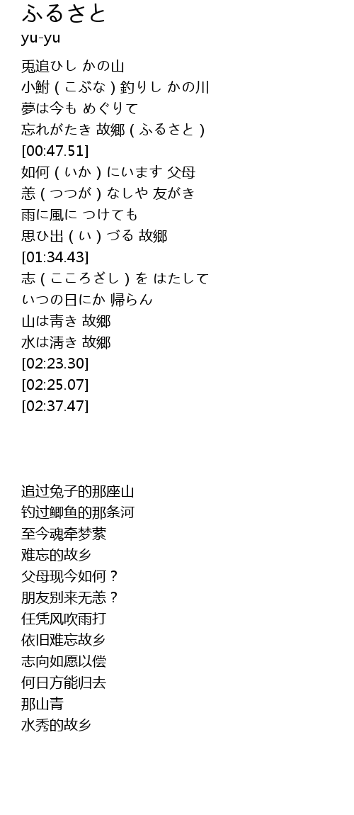 | [01:25.94] | 思ひ出(い)づる 故郷 |