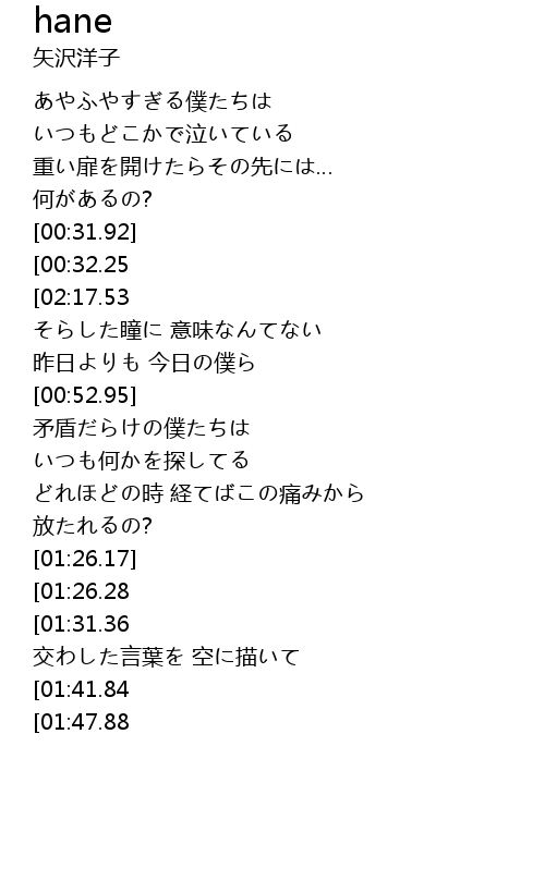 | [02:12.73][00:32.25] | そう未熟なままの蒼い姿 |
