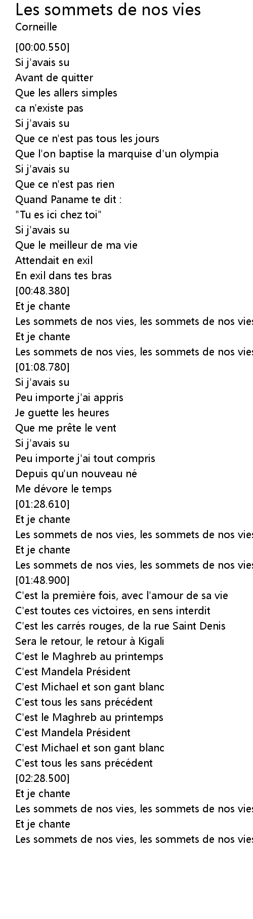 | [02:44.110] | Les sommets de nos vies, les sommets de nos vies |