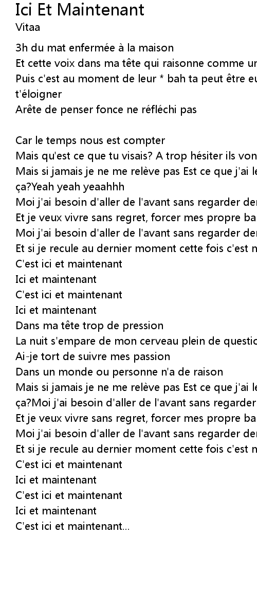 | Mais si jamais je ne me rele ve pas Est ce que j' ai les e paules pour surmonter a? Moi j' ai besoin d' aller de l' avant sans regarder derrie re | |