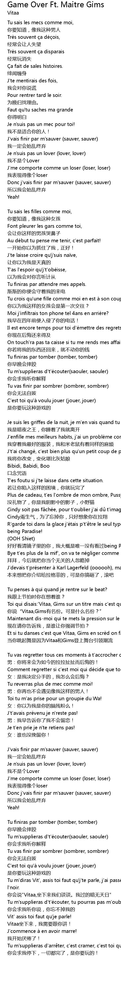 | ni shuo" Vitaa, Gims you ming fen. ke shi shen me ming fen?" | |