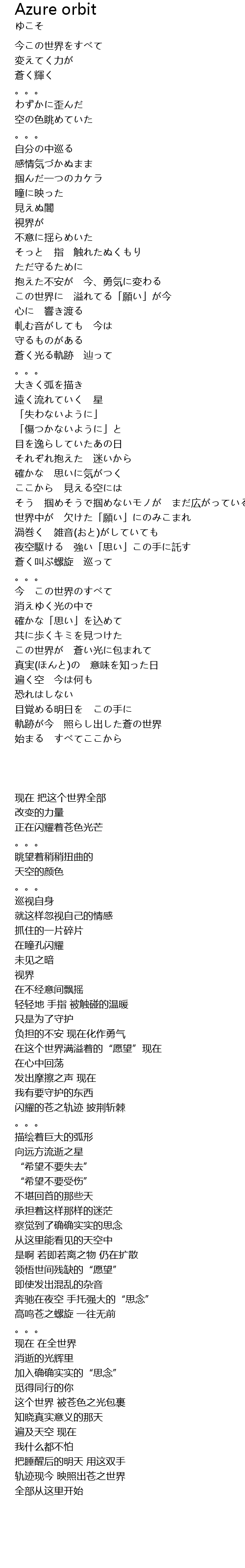 | Song | Azure orbit |