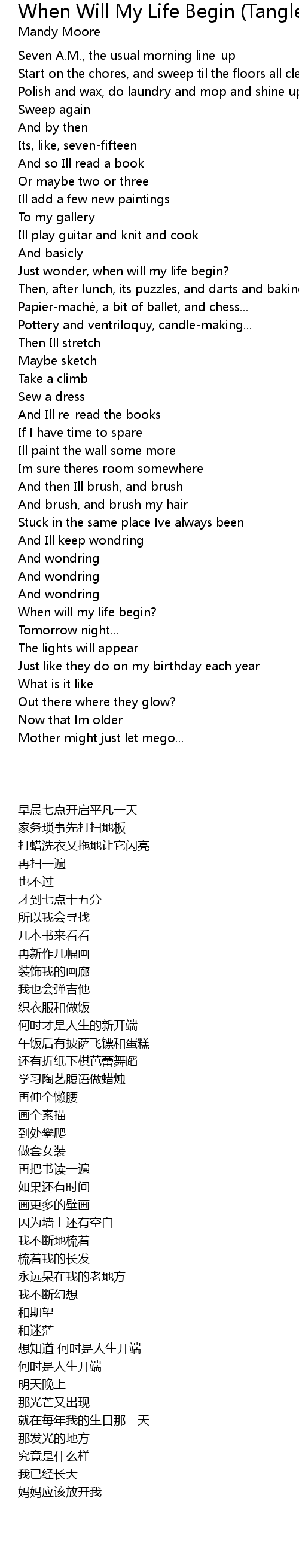 | [00:49.320] | Just wonder, when will my life begin? |