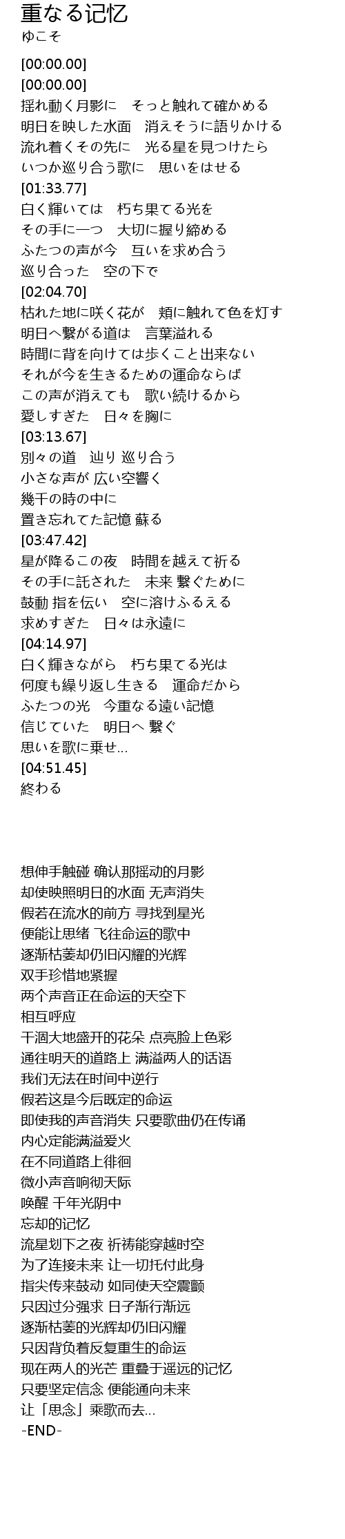 | [04:28.57] | ふたつの光 今重なる遠い記憶 |