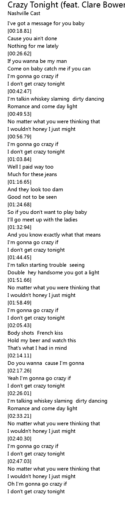 I don't get crazy tonight |