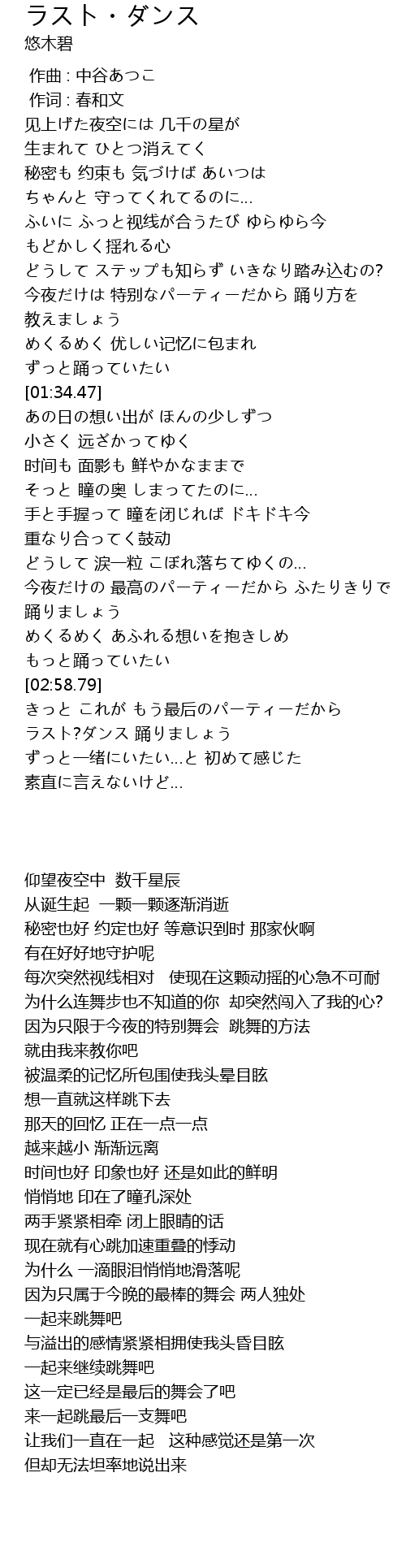 | [03:28.13] | きっと これが もう最后のパーティーだから ラスト?ダンス 踊りましょう |
