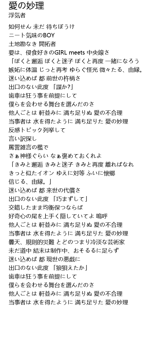 | 他人ごとは 軒並みに 満ち足りぬ 愛の不合理 | |