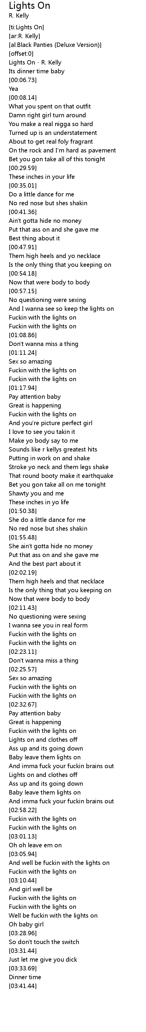 | [00:00.46] | Lights On - R. Kelly |