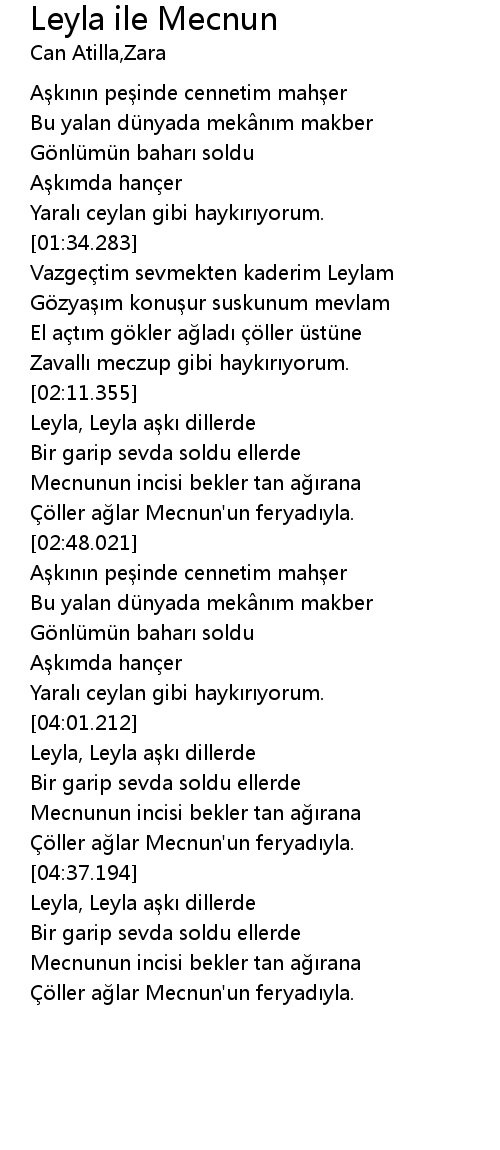 | [04:01.660] | Leyla, Leyla aşkı dillerde |