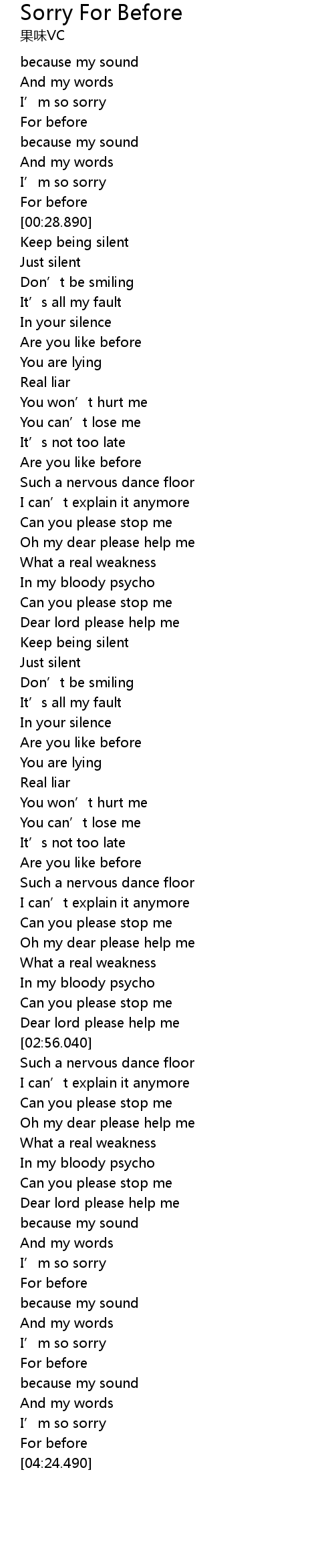 | [00:24.600] | For before |