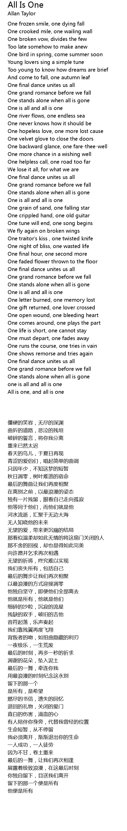 All Is One Lyrics
