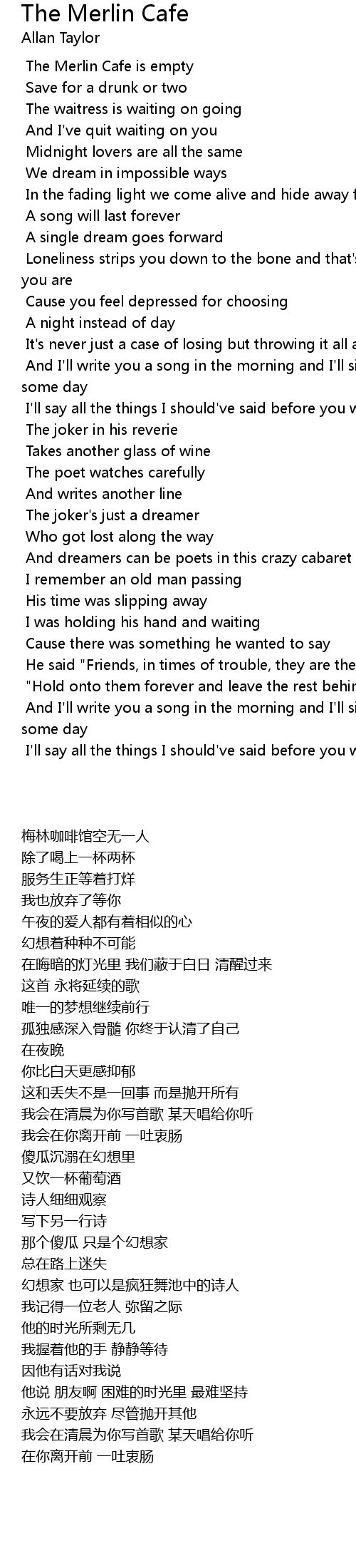 And I'll write you a song in the morning and I'll sing it for you some day |