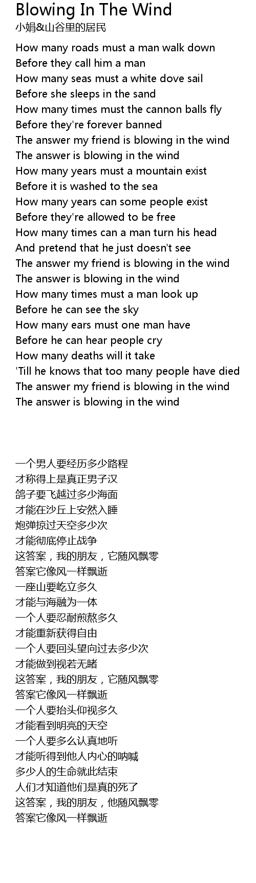 | [00:50.490] | The answer my friend is blowing in the wind |