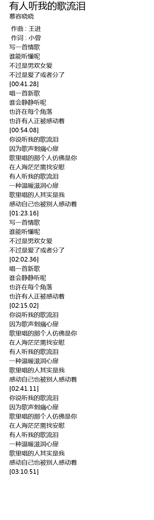 | [02:54.28] | 有人听我的歌流泪 |