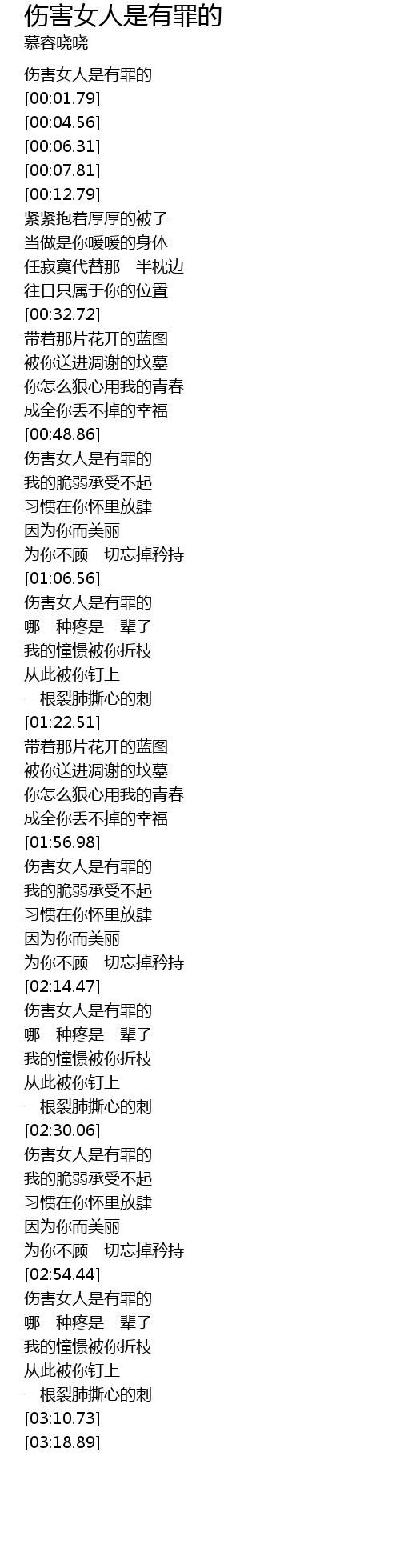 | [02:38.63] | shāng hài nǚ rén shì yǒu zuì de |