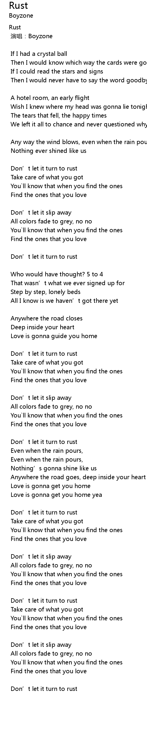 | Don' t let it turn to rust | |