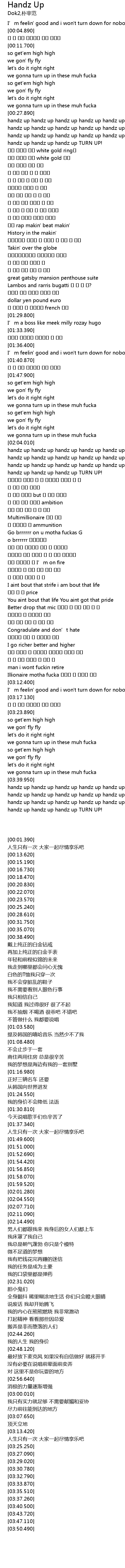 | [03:40.500] | handz up handz up handz up handz up handz up |