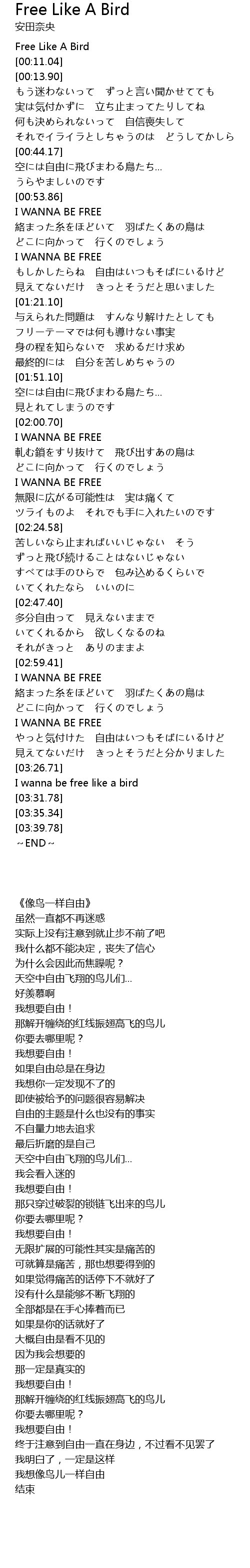 | [03:27.89] | I wanna be free like a bird |