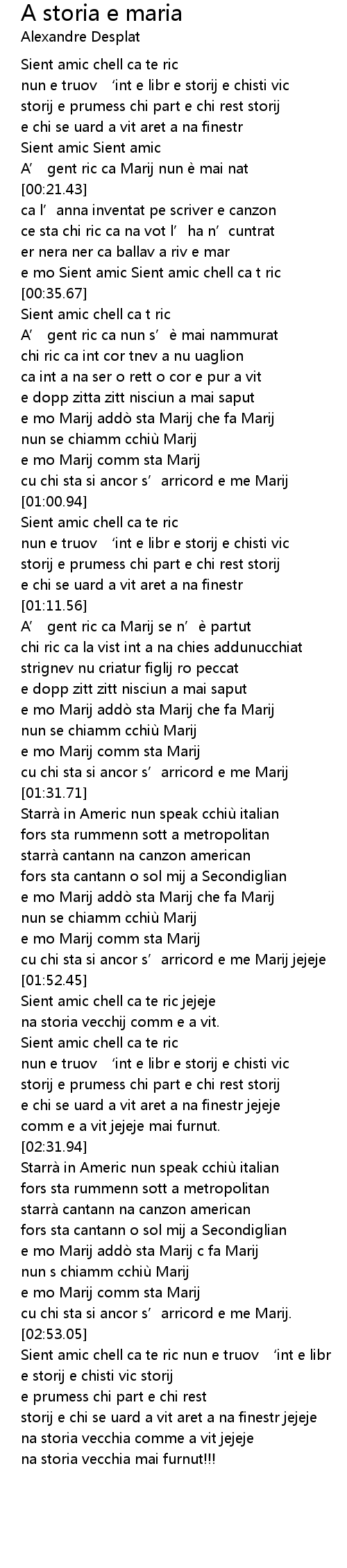 | [01:42.11] | e mo Marij addo sta Marij che fa Marij |
