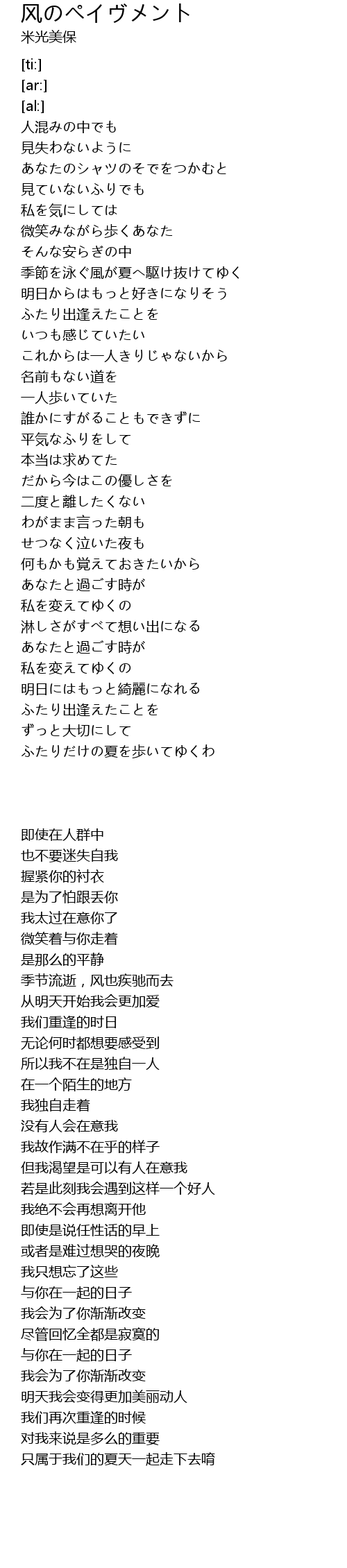 | Song | 风のペイヴメント |