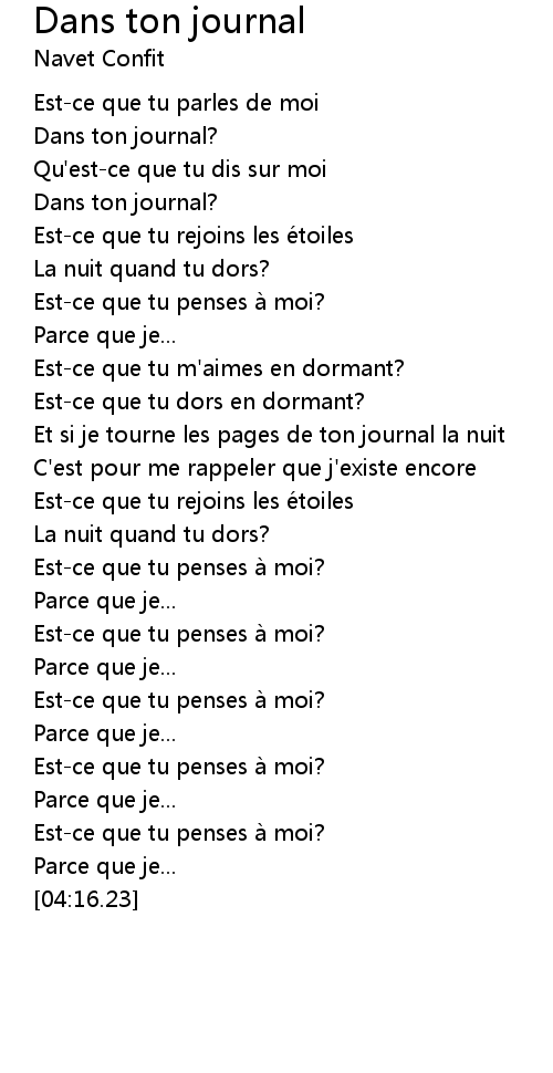 | Song | Dans ton journal |