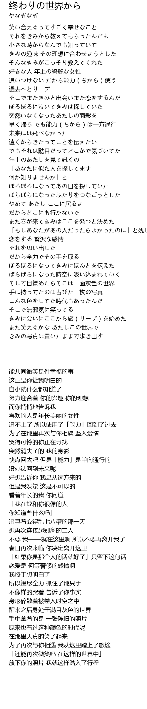 | [03:56.17] | そして目覚めたらそこは一面灰色の世界 |
