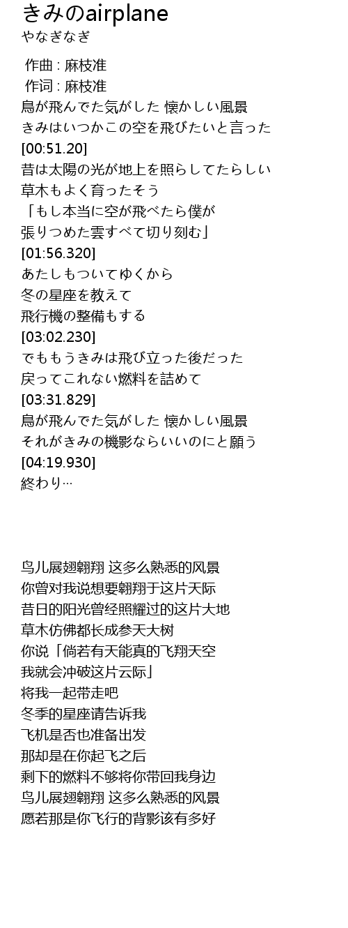 | [00:32.509] | きみはいつかこの空を飛びたいと言った |